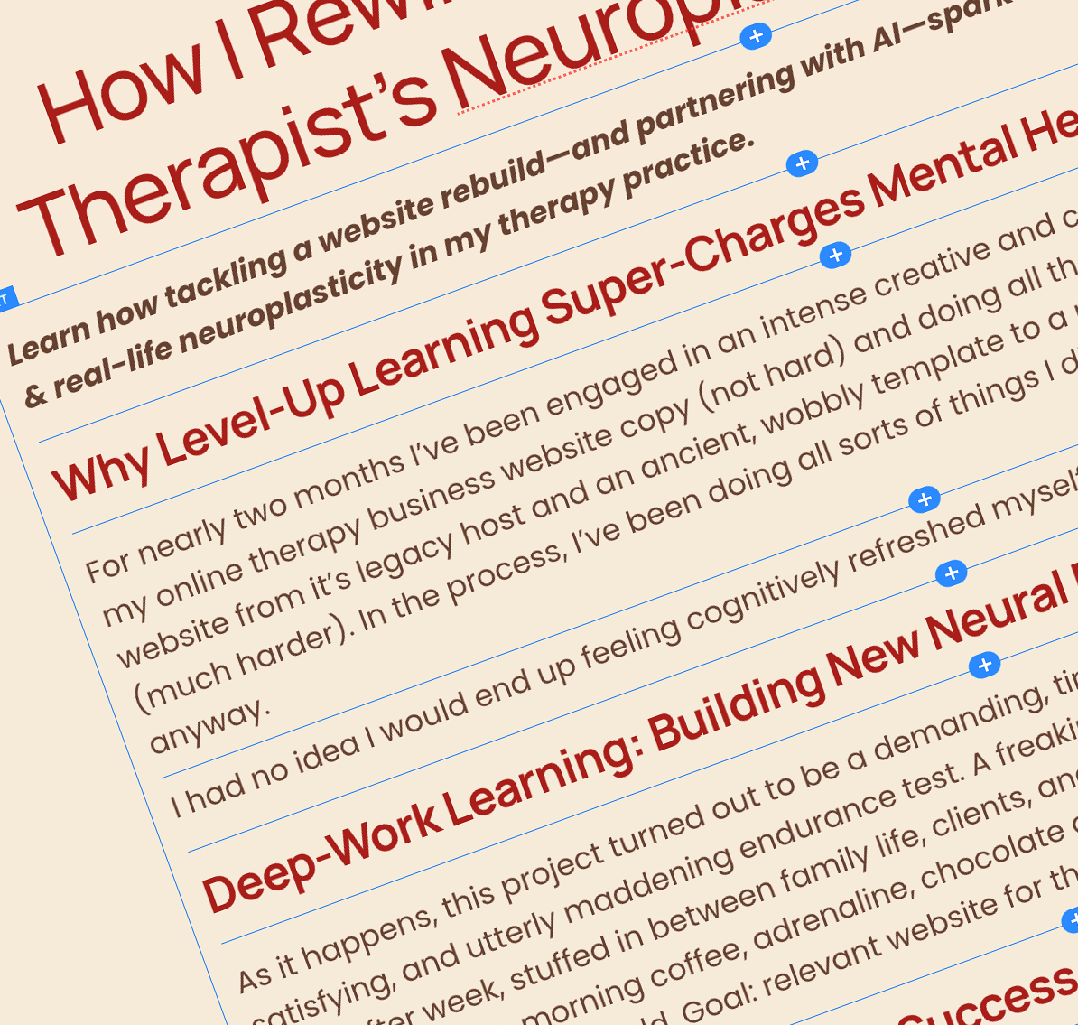 Learn how tackling a website rebuild—and partnering with AI—sparked fresh synapses, dopamine hits & real-life neuroplasticity in my therapy practice.